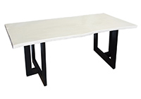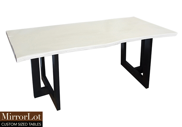 This semi-gloss white table is simple, yet has a classic look that never goes out of style. It is rectangular with a live edge, but can customized to your desired shape and size. The live edge shape table top is made from solid poplar wood and the table legs are
