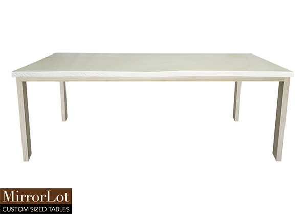 This semi-gloss white table is simple, yet has a classic look that never goes out of style. It is rectangular with a live edge, but can customized to your desired shape and size. The live edge shape table top is made from solid poplar wood and the table legs are