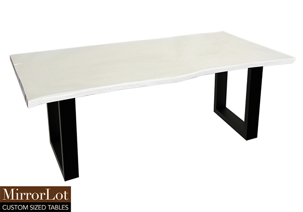 This semi-gloss white table is simple, yet has a classic look that never goes out of style. It is rectangular with a live edge, but can customized to your desired shape and size. The live edge shape table top is made from solid poplar wood and the table legs are