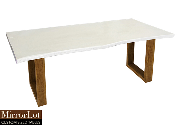This semi-gloss white table is simple, yet has a classic look that never goes out of style. It is rectangular with a live edge, but can customized to your desired shape and size. The live edge shape table top is made from solid poplar wood and the table legs are