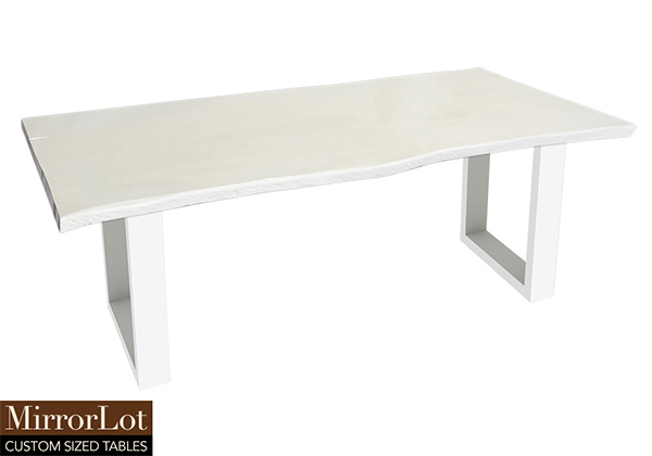 This semi-gloss white table is simple, yet has a classic look that never goes out of style. It is rectangular with a live edge, but can customized to your desired shape and size. The live edge shape table top is made from solid poplar wood and the table legs are