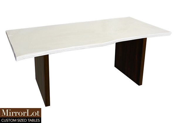 This semi-gloss white table is simple, yet has a classic look that never goes out of style. It is rectangular with a live edge, but can customized to your desired shape and size. The live edge shape table top is made from solid poplar wood and the table legs are