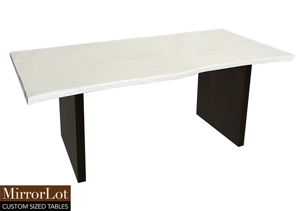 This semi-gloss white table is simple, yet has a classic look that never goes out of style. It is rectangular with a live edge, but can customized to your desired shape and size. The live edge shape table top is made from solid poplar wood and the table legs are