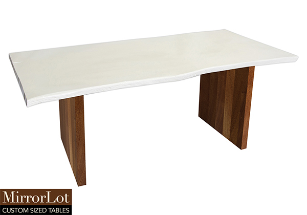 This semi-gloss white table is simple, yet has a classic look that never goes out of style. It is rectangular with a live edge, but can customized to your desired shape and size. The live edge shape table top is made from solid poplar wood and the table legs are