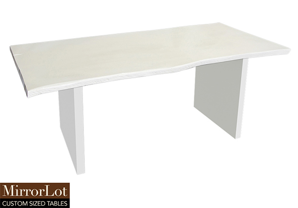 This semi-gloss white table is simple, yet has a classic look that never goes out of style. It is rectangular with a live edge, but can customized to your desired shape and size. The live edge shape table top is made from solid poplar wood and the table legs are