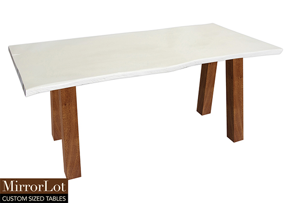 This semi-gloss white table is simple, yet has a classic look that never goes out of style. It is rectangular with a live edge, but can customized to your desired shape and size. The live edge shape table top is made from solid poplar wood and the table legs are