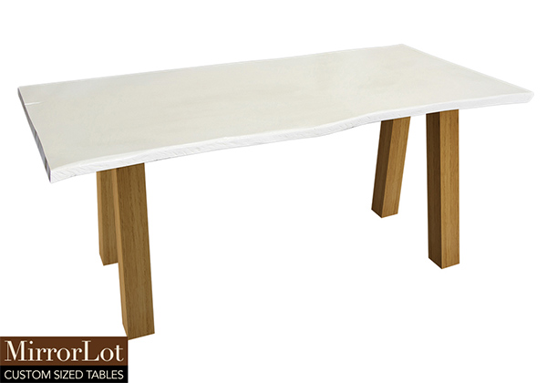 This semi-gloss white table is simple, yet has a classic look that never goes out of style. It is rectangular with a live edge, but can customized to your desired shape and size. The live edge shape table top is made from solid poplar wood and the table legs are