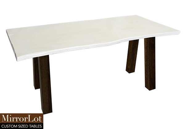 This semi-gloss white table is simple, yet has a classic look that never goes out of style. It is rectangular with a live edge, but can customized to your desired shape and size. The live edge shape table top is made from solid poplar wood and the table legs are