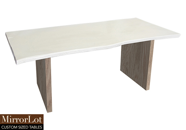 This semi-gloss white table is simple, yet has a classic look that never goes out of style. It is rectangular with a live edge, but can customized to your desired shape and size. The live edge shape table top is made from solid poplar wood and the table legs are