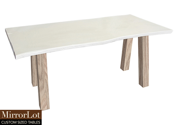 This semi-gloss white table is simple, yet has a classic look that never goes out of style. It is rectangular with a live edge, but can customized to your desired shape and size. The live edge shape table top is made from solid poplar wood and the table legs are