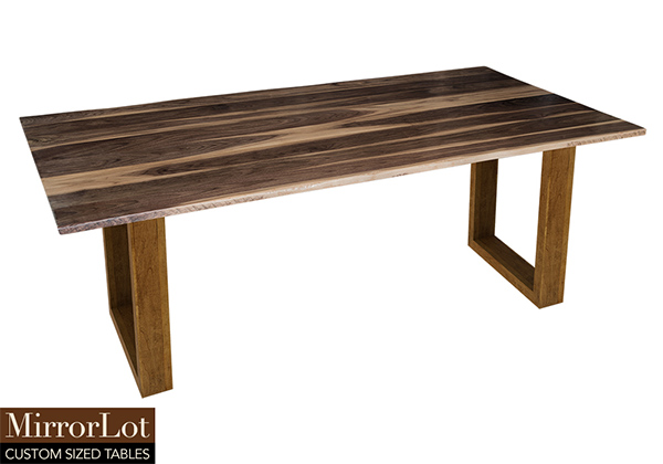 This natural walnut table brings rustic charm to any room in your house. It is rectangular with a live edge, but can be customized to your desired shape and size. The live edge shape table top is made from solid walnut wood and the table legs are