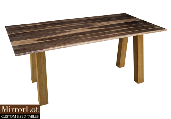 This natural walnut table brings rustic charm to any room in your house. It is rectangular with a live edge, but can be customized to your desired shape and size. The live edge shape table top is made from solid walnut wood and the table legs are