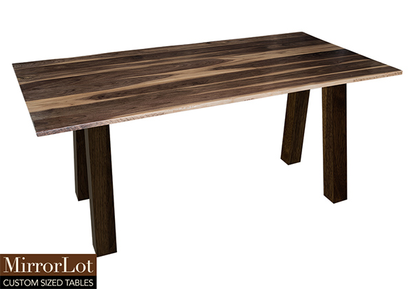 This natural walnut table brings rustic charm to any room in your house. It is rectangular with a live edge, but can be customized to your desired shape and size. The live edge shape table top is made from solid walnut wood and the table legs are