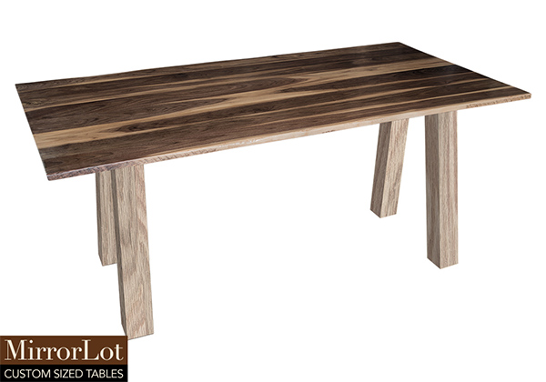 This natural walnut table brings rustic charm to any room in your house. It is rectangular with a live edge, but can be customized to your desired shape and size. The live edge shape table top is made from solid walnut wood and the table legs are