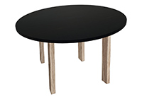 Wood & finish: Black stained table top and natural red oak table legs