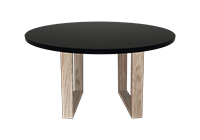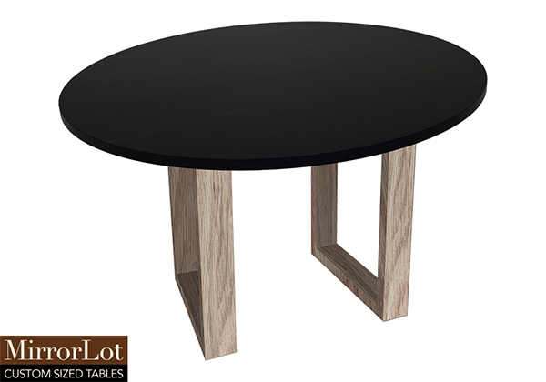 Wood & finish: Black stained table top and natural red oak table legs