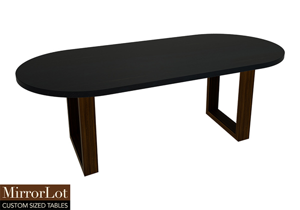 Wood & finish: Black stained table top and bronze walnut stained table legs