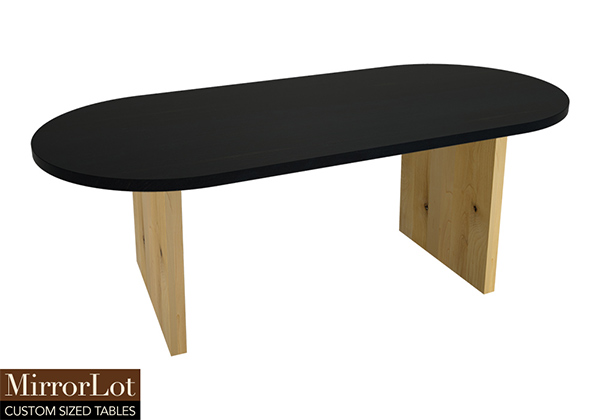 Wood & finish: Black stained table top and natural supreme alder table legs