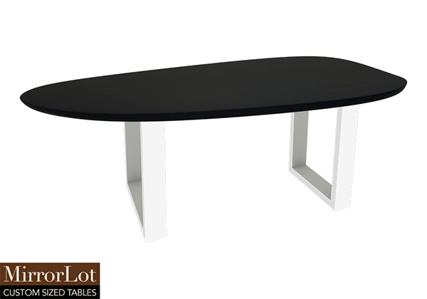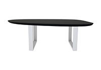 The Vail table's timeless style could easily fit in any dining room or office setting. The beveled knife edge unique round shape table top is made from solid poplar wood and the table legs are
