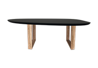 The Vail table's timeless style could easily fit in any dining room or office setting. The beveled knife edge unique round shape table top is made from solid poplar wood and the table legs are