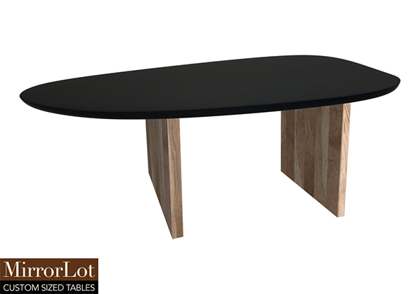 The Vail table's timeless style could easily fit in any dining room or office setting. The beveled knife edge unique round shape table top is made from solid poplar wood and the table legs are