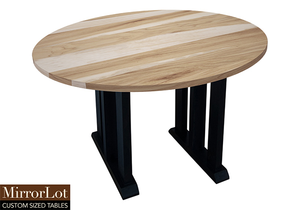 The Tyler table's timeless style could easily fit in any dining room or office setting. The round shape table top is made from solid pecan hickory wood and the table legs are