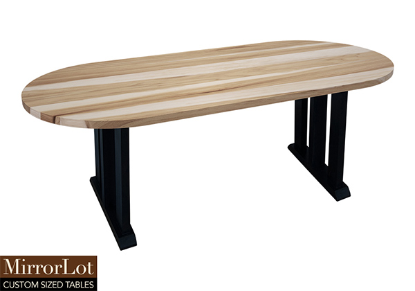 The Kyle table's timeless style could easily fit in any dining room or office setting. The oval shape table top is made from solid pecan hickory wood and the table legs are