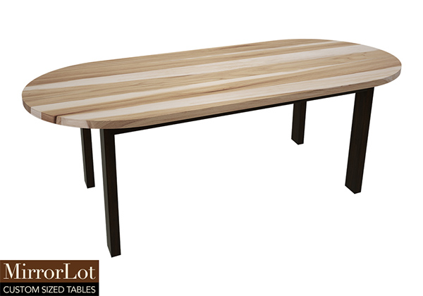 The Kyle table's timeless style could easily fit in any dining room or office setting. The oval shape table top is made from solid pecan hickory wood and the table legs are