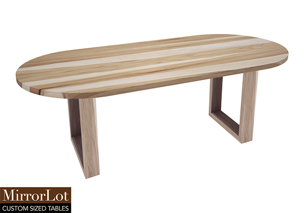 The Kyle table's timeless style could easily fit in any dining room or office setting. The oval shape table top is made from solid pecan hickory wood and the table legs are