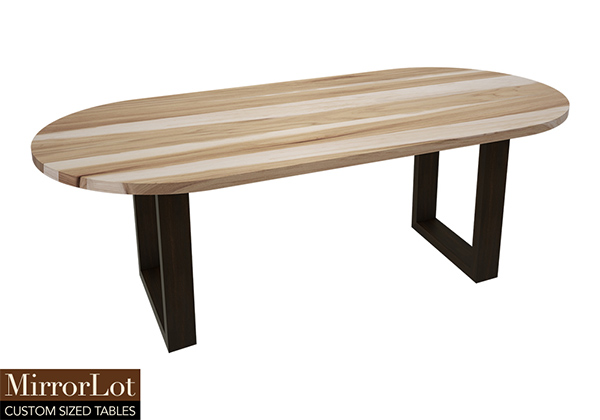 The Kyle table's timeless style could easily fit in any dining room or office setting. The oval shape table top is made from solid pecan hickory wood and the table legs are