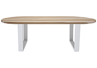 The Kyle table's timeless style could easily fit in any dining room or office setting. The oval shape table top is made from solid pecan hickory wood and the table legs are