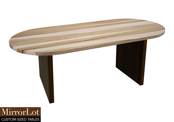The Kyle table's timeless style could easily fit in any dining room or office setting. The oval shape table top is made from solid pecan hickory wood and the table legs are