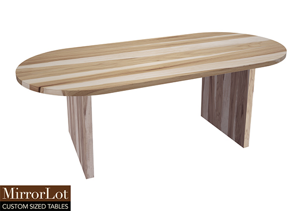 The Kyle table's timeless style could easily fit in any dining room or office setting. The oval shape table top is made from solid pecan hickory wood and the table legs are