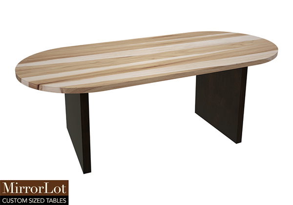 The Kyle table's timeless style could easily fit in any dining room or office setting. The oval shape table top is made from solid pecan hickory wood and the table legs are