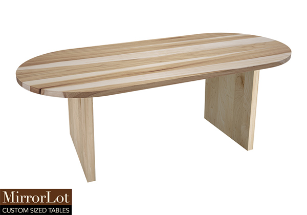 The Kyle table's timeless style could easily fit in any dining room or office setting. The oval shape table top is made from solid pecan hickory wood and the table legs are