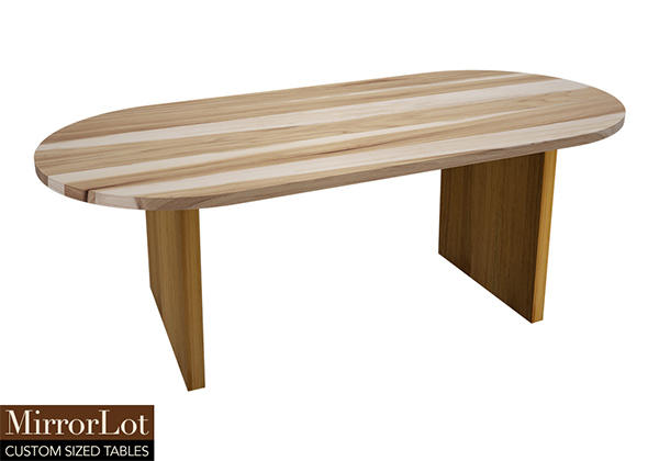 The Kyle table's timeless style could easily fit in any dining room or office setting. The oval shape table top is made from solid pecan hickory wood and the table legs are
