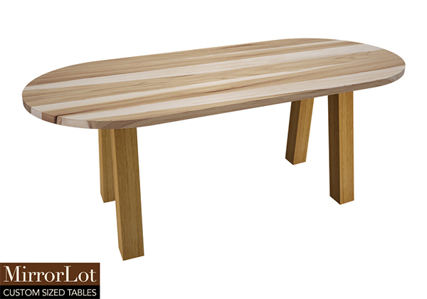 The Kyle table's timeless style could easily fit in any dining room or office setting. The oval shape table top is made from solid pecan hickory wood and the table legs are