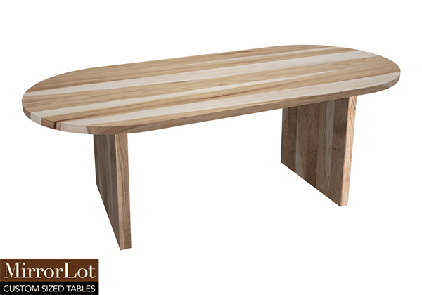 The Kyle table's timeless style could easily fit in any dining room or office setting. The oval shape table top is made from solid pecan hickory wood and the table legs are