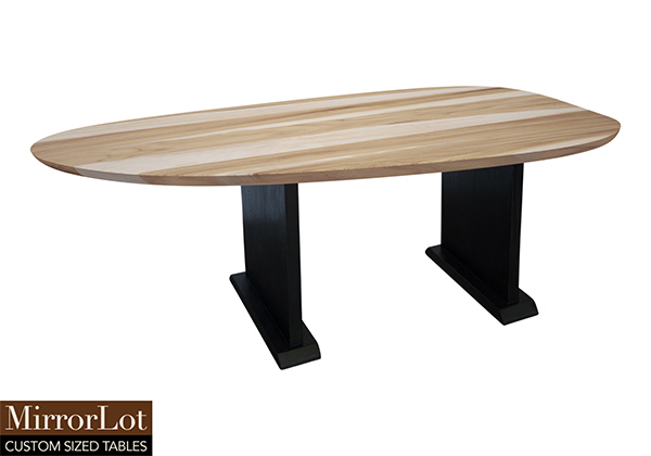 The Georgetown table's timeless style could easily fit in any dining room or office setting. The beveled knife edge unique round shape table top is made from solid pecan hickory wood and the table legs are