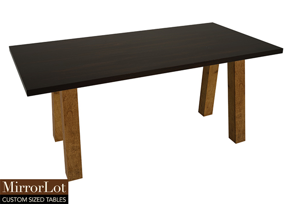 Wood & finish: Dark Kona brown/espresso stained table top and dark natural supreme alder table legs
