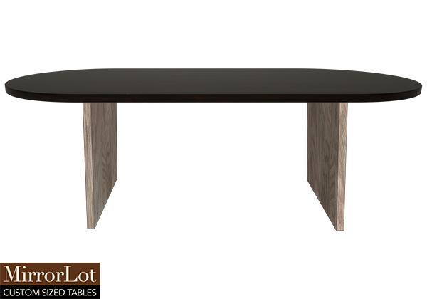 Wood & finish: Dark Kona brown/espresso stained table top and natural red oak table legs