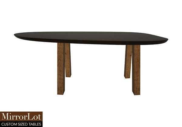 Wood & finish: Dark Kona brown/espresso stained table top and dark natural supreme alder table legs