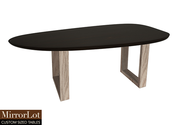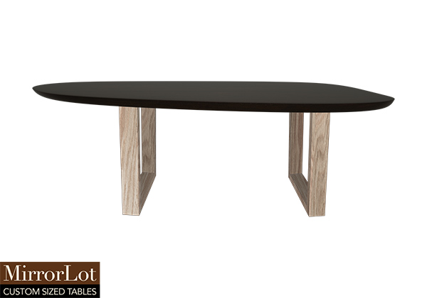 Wood & finish: Dark Kona brown/espresso stained table top and natural red oak table legs
