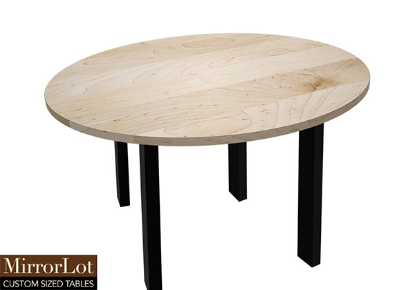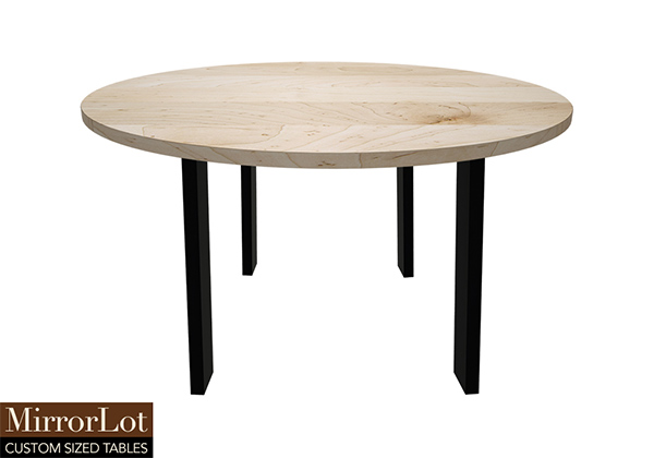 The Mesa table's timeless style could easily fit in any dining room or office setting. The round shape table top is made from solid maple wood and the table legs are