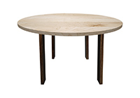 The Mesa table's timeless style could easily fit in any dining room or office setting. The round shape table top is made from solid maple wood and the table legs are