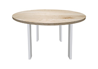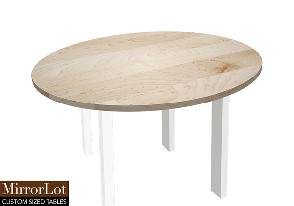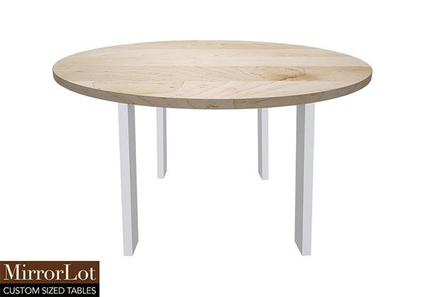 The Mesa table's timeless style could easily fit in any dining room or office setting. The round shape table top is made from solid maple wood and the table legs are