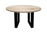 The Mesa table's timeless style could easily fit in any dining room or office setting. The round shape table top is made from solid maple wood and the table legs are