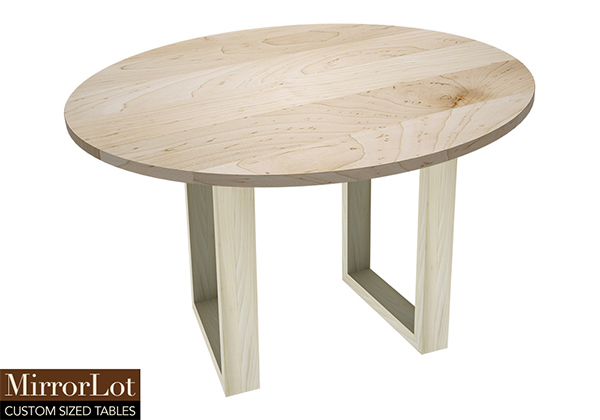 The Mesa table's timeless style could easily fit in any dining room or office setting. The round shape table top is made from solid maple wood and the table legs are