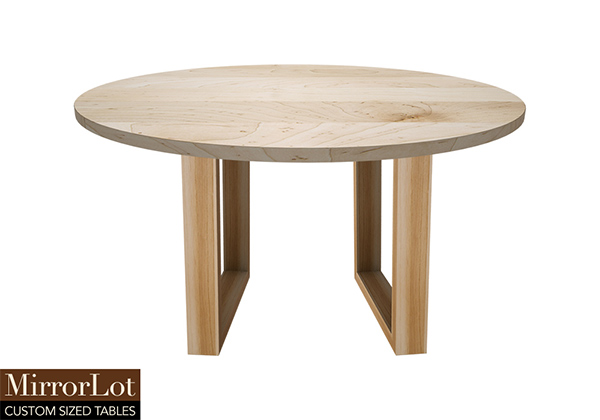 The Mesa table's timeless style could easily fit in any dining room or office setting. The round shape table top is made from solid maple wood and the table legs are