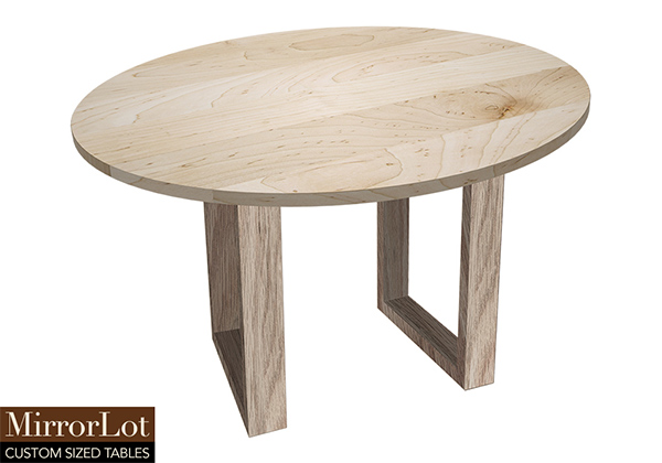 The Mesa table's timeless style could easily fit in any dining room or office setting. The round shape table top is made from solid maple wood and the table legs are